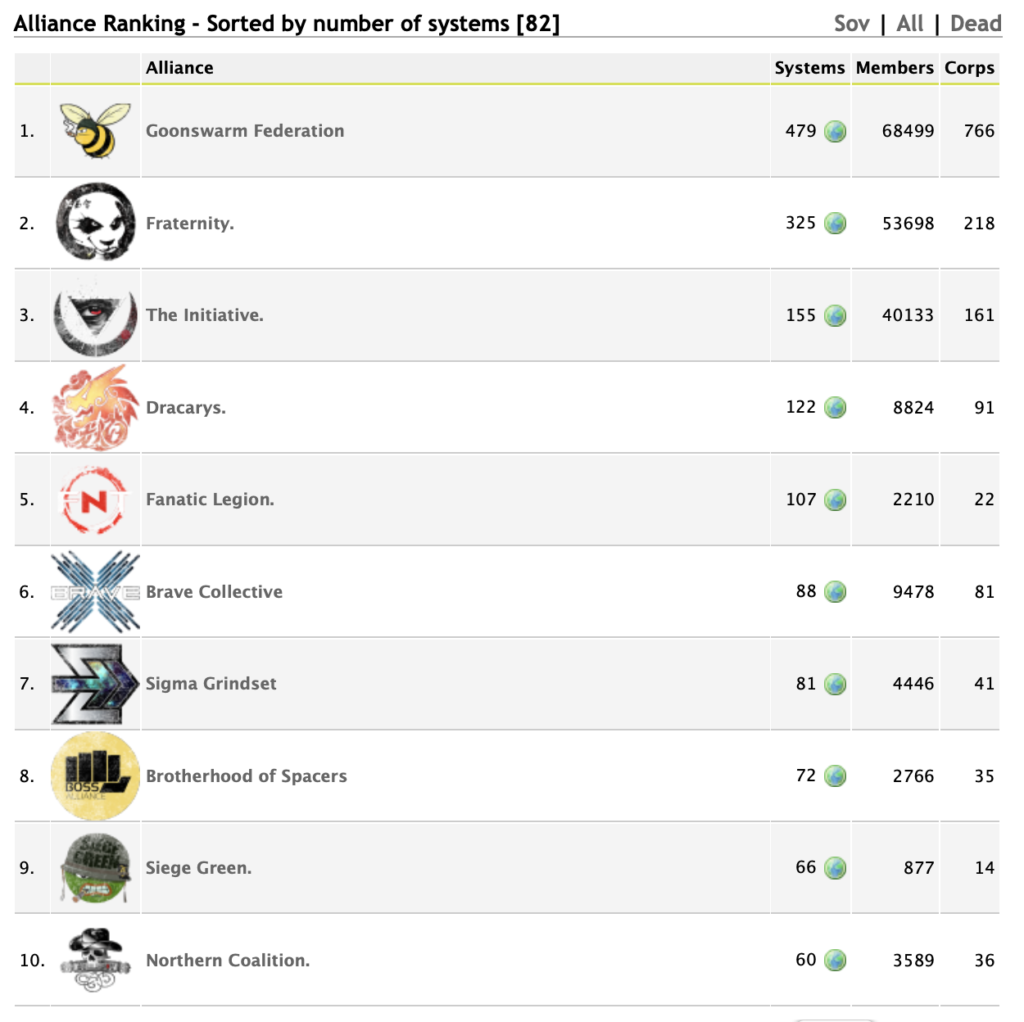 ところが9位にランクインするSiege Green.(SGGRN)は、わずか877名のメンバー数で66システムを保有している。この数字は一見すると異常だ。なぜ彼らは、自分たちの10倍、50倍の規模を持つアライアンスと肩を並べることができるのか?