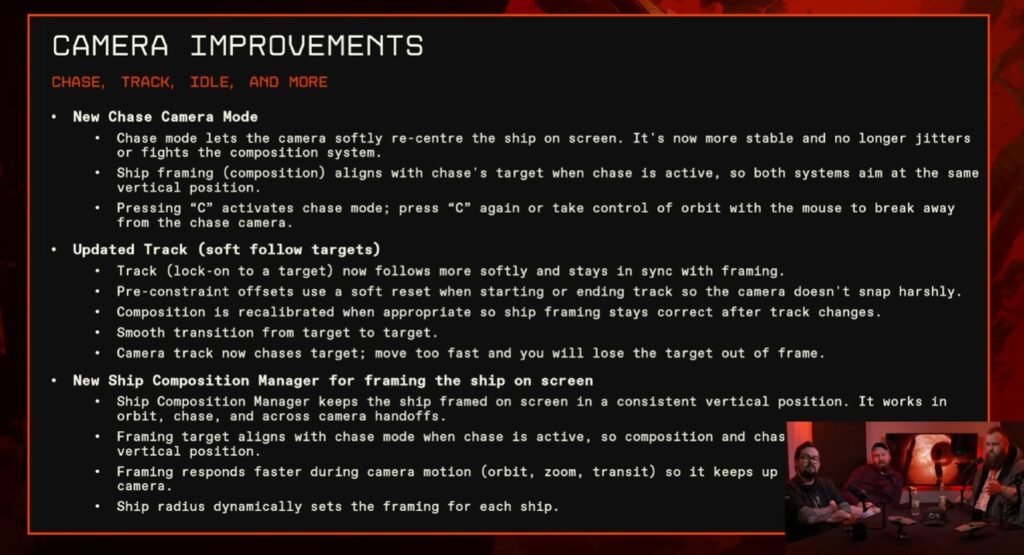 CCP Good Fellowは操作性について「我々はモーメント・トゥ・モーメントのゲームプレイで宇宙船の船長であることを実感できるゲームを作っている。まだ完成には程遠いが、このアップデートで大きく前進した」と述べた。また、テレスコープモード映像では手動射撃モードのターゲティング・レティクルが確認でき、これは次のアップデートで実装予定の機能だという。