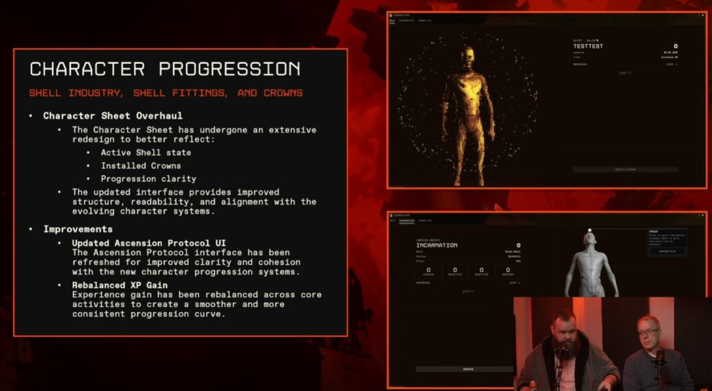 キャラクターシートも刷新され、シェル情報やアセンション・プロトコルUIが更新されている。